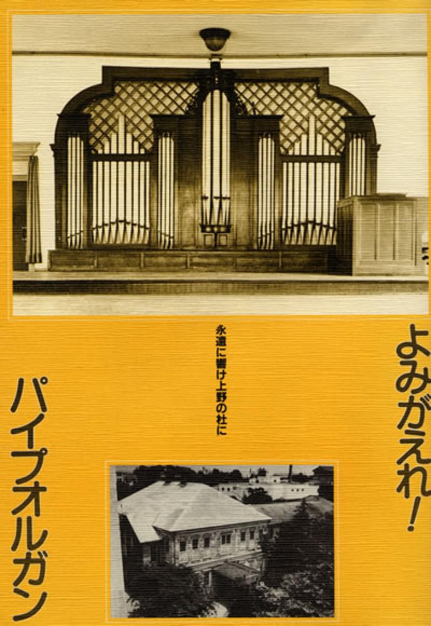 このオルガンは大正九年、イギリスのアボット・スミス社により輸入されたもので、パイプ総数一四〇〇本近い、わが国最初の本格的コンサート用オルガンであり、音色も大変に美しいものです。 このオルガンは当初、奏楽堂の舞台正面の飾りとしてだけ残される予定でしたが、是非ともあの美しい音色をよみがえらせたいという多くの要望に応え、台東区では修復の方向で検討しています。 しかしなんといっても長年の使用により、傷んだ部分も多く、昔の美しい音色を取り戻すためにはかなりの費用がかかると推定されます。とはいえ、パイプオルガン無しの奏楽堂では意味がない、と私たちは考えます。このオルガンは、日本のオルガン音楽の歴史を背負ってきた貴重なオルガンであるとともに、パイプオルガンとはそもそも建築そのものが楽器本体である、というような唯一の楽器だからです。 そこで、地元の皆さん、広く全国の皆さんの協力をいただいて、一人一人が小さな力を出し合って、この貴重な文化財を支えたいと思います。一人でも多くの方々に、パイプオルガン保存復活のための募金をお願いいたします。 昭和六十年四月六日 奏楽堂のパイプオルガンをよみがえらせる会 ※この小冊子は、「よみがえらせる会」の趣旨に賛同して、地元の地域雑誌「谷中・根津・千駄木」が企画・編集・発行いたしました