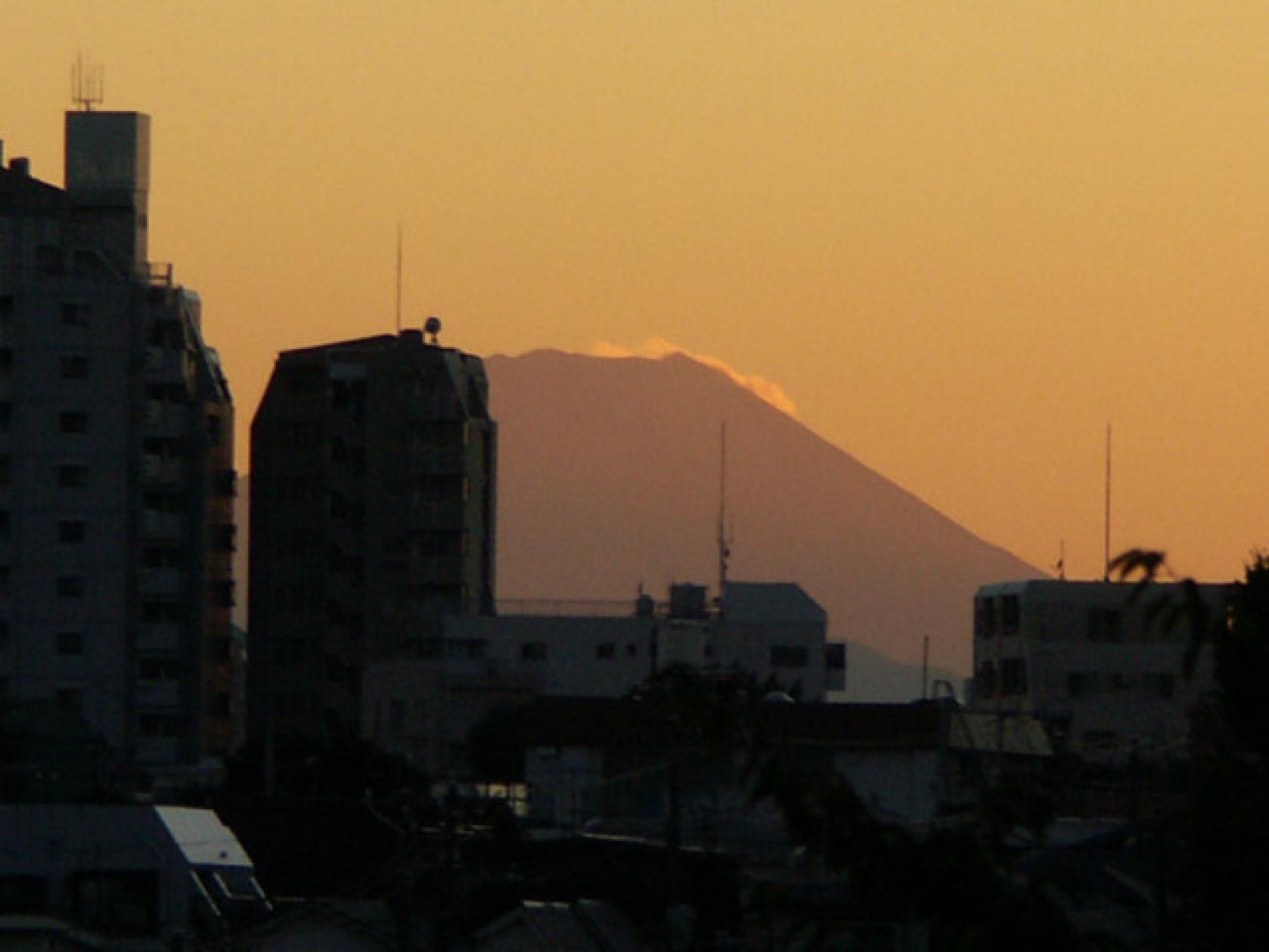 日暮里富士見坂から望む富士山頂に夕日が沈むときに輝く風景は「ダイヤモンド富士」と呼ばれて、冬至をはさんだ11月中旬と1月下旬の、1年に2回だけ見ることができます。