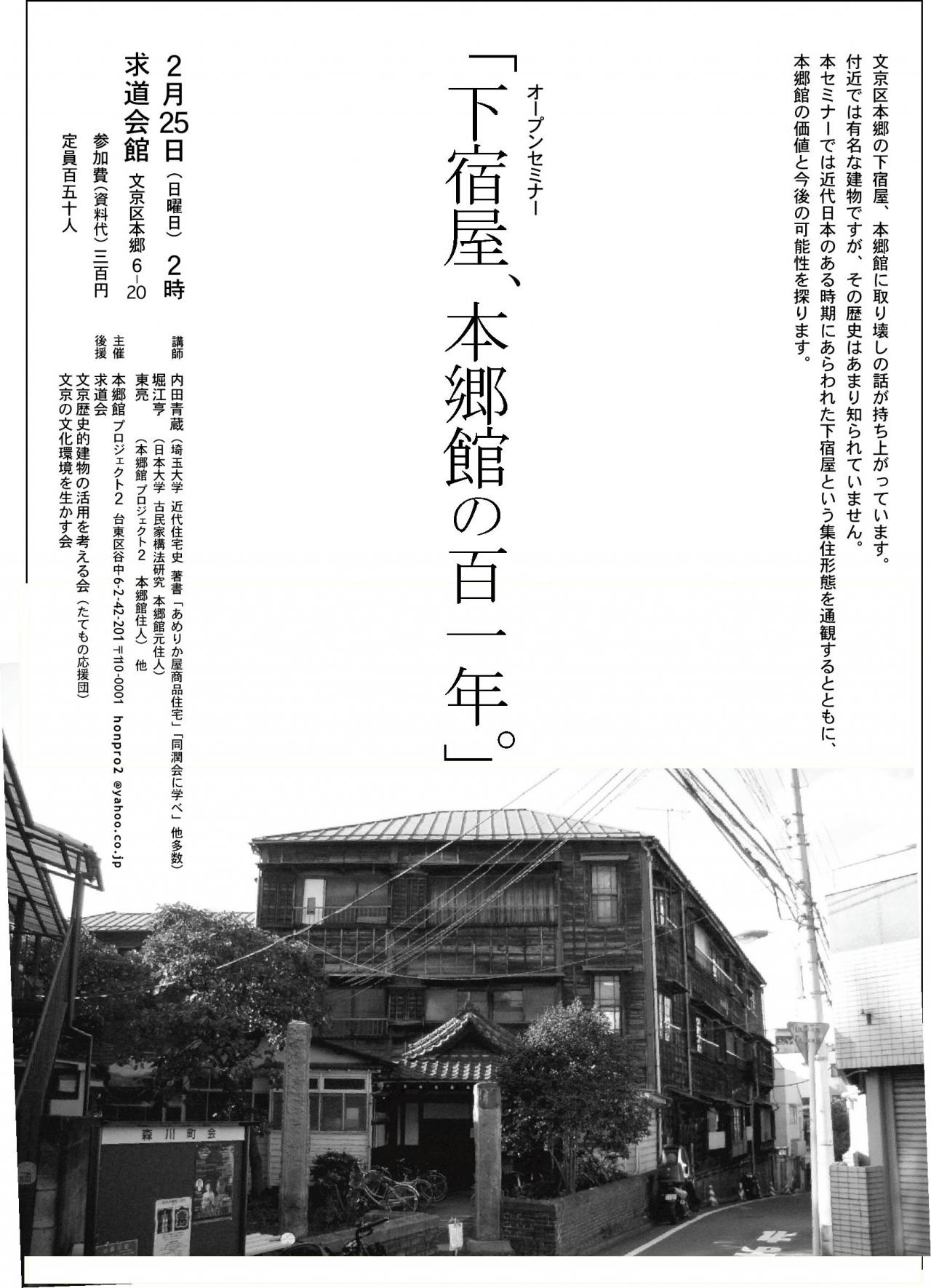 オープンセミナー「下宿屋、本郷館の百一年」