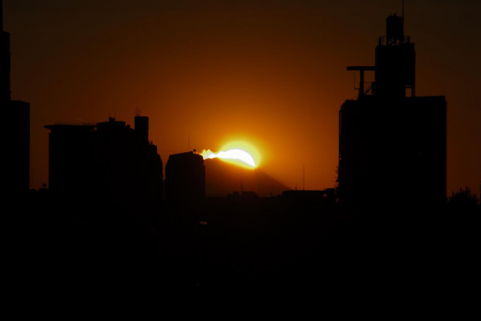 日暮里富士見坂から望む富士山頂に夕日が沈むときに輝く風景は「ダイヤモンド富士」と呼ばれて、冬至をはさんだ11月中旬と1月下旬の、1年に2回だけ見ることができます。
