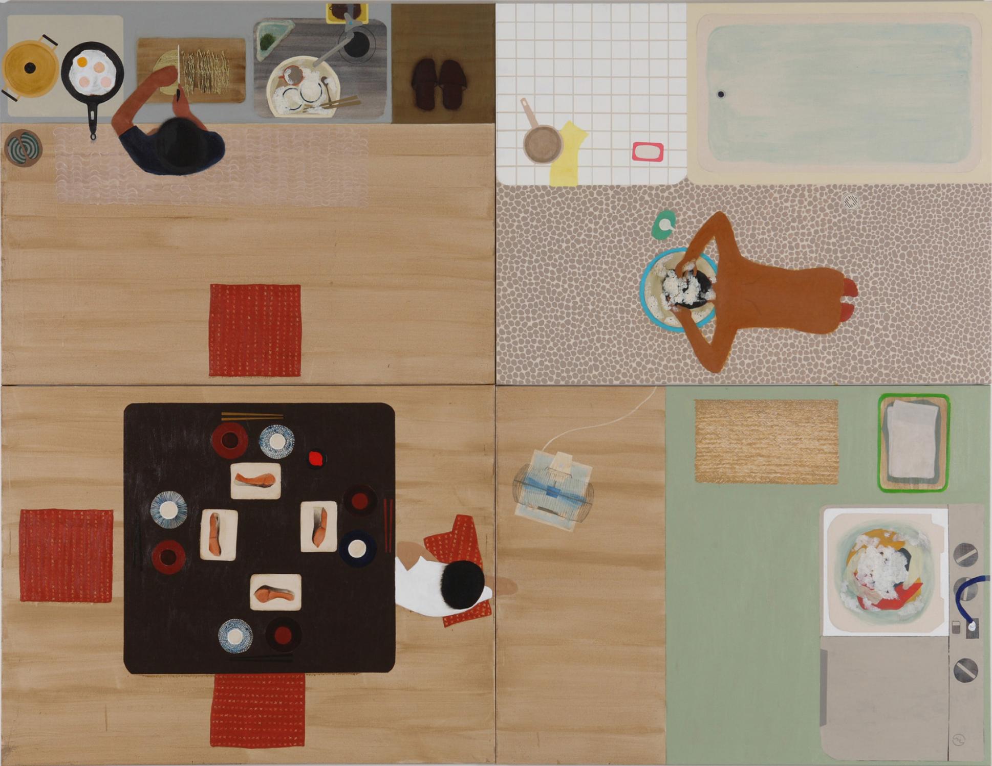 私はずっと今の家に住んでいて、生活も、絵を描くのも、すべてこの家です。この家に住んでから、家族は増えたり減ったりしますが、家はだんだん古くなりながらも、ずっと建っていて、私はいつもこの家に帰ります。